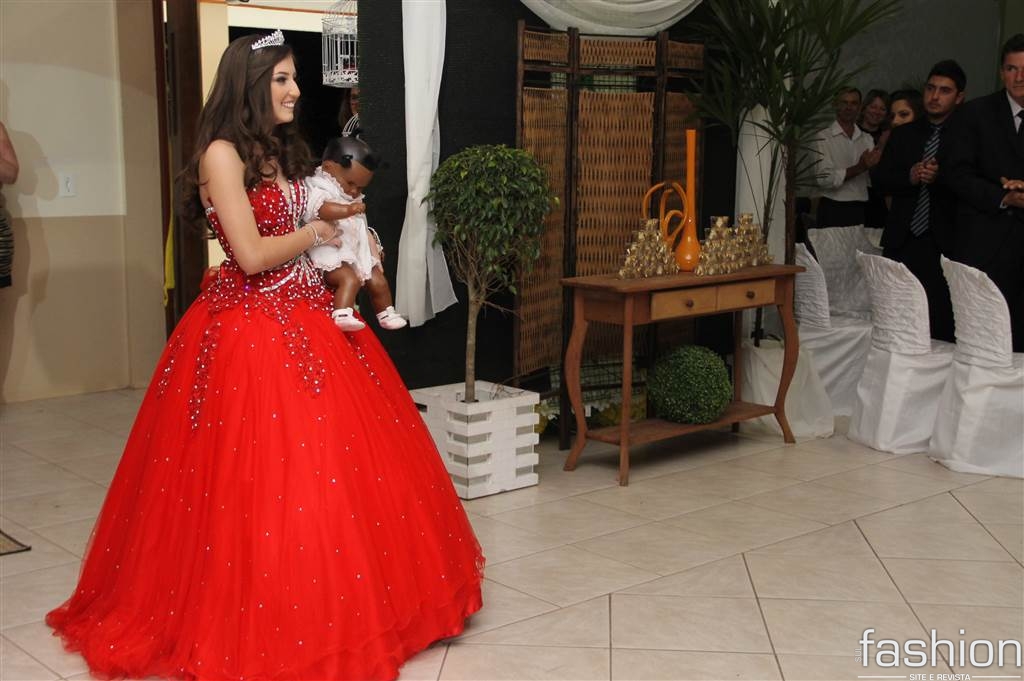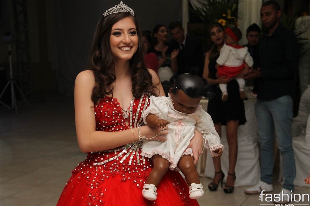 Noite inesquecível e mágica para a doce aniversariante Elisabeth S. Ribeiro, que comemorou 15 anos com linda festa, no Jardim Itália, em Meleiro-SC. Emocionados, os pais e irmãos esperavam a princesa Elisabeth, que chegou linda vestindo red dress e carregando nos braços sua boneca preferida, atravessou o salão com largo sorriso e sob o forte aplauso dos convidados, entregou o brinquedo à mãe, Ivania Nascimento da Silva, da qual a recebeu com um abraço apertado e cheio de amor. As lágrimas de Ivania expressavam o forte sentimento de alegria e orgulho por debutar sua menina, que agora inicia uma nova fase, tornando-se mulher. A fada madrinha da sorridente aniversariante, Nani Kerber, deixou suas palavras à Elisa, "Me sinto feliz em poder acompanhar e participar desse momento tão especial na vida da nossa princesa, e ainda mais, de ser sua madrinha", declarou.