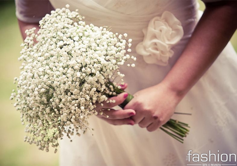 Flores miúdas, como mosquitinhos, sempre-vivas e chuva de prata não precisam, necessariamente, ser coadjuvantes no buquê da noiva. Usadas em grandes quantidades elas podem compor arranjos lindos. "Este tipo de buquê combina bem com cerimônias diurnas e campestres. O vestido da noiva não pode ter brilho e deve ser leve, sem volume. Para dar mais cor ao acessório vale usar uma fita no cabo", aconselha a especialista.