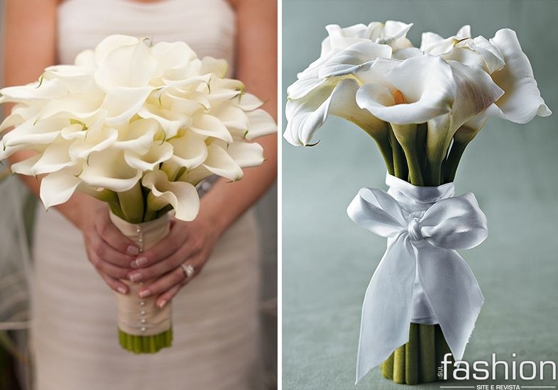 Quando pensamos em buquê branco, os lírios e copos de leite logo vêm à mente. Isto porque estas flores se tornaram as mais usadas por noivas no mundo todo graças à sua delicadeza na forma e no aroma. "Muitas noivas optam por buquês grandiosos, com muitas flores. Outras preferem entrar com apenas um copo de leite ou lírio na mão. A escolha é muito pessoal, mas em ambos os casos o efeito é encantador. Elas combinam perfeitamente com todo tipo de cerimônia", conta Edna.