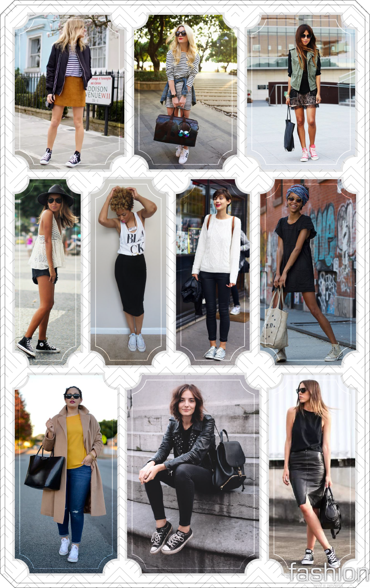 O Converse é conhecido de velha data de muita gente, mas se como eu, você só usava para ir ao colégio quando era mais nova, hoje as minhas combinações favoritas são com saias! Adoro fazer essa mistura por que faz um contraste da peça super feminina com o tênis mais largadinho, amo! O meu modelo favorito é o branquinho de cano curto, mas também adoro a combinação dos modelos de cano alto com shorts jeans + jaquetinha. Acho cool!