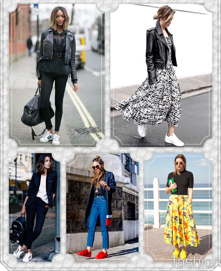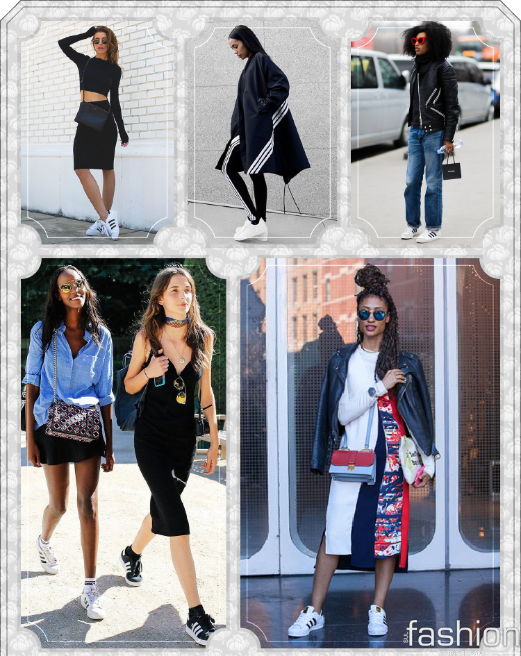 O modelo mais diferente de todos e o mais esportivo, é também um dos que mais tem feito sucesso nos últimos tempos. O modelo superstar da Adidas virou febre no ano passado e toda fashionista tem um para chamar de seu. Os meus favoritos são os super coloridos da coleção do Pharrell, mas os branquinhos também são uma graça! O legal desse modelo é tentar fazer combinações que fujam da pegada esportiva, por exemplo com saias, vestidos ou blazers de alfaiataria, por exemplo!