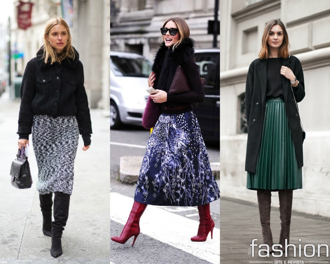 5. Para as mais ousadas e fashionistas, vale a pena tentar o combo midi + bota over the knee! A combinação fica incrível e você pode até dispensar a meia-calça.
