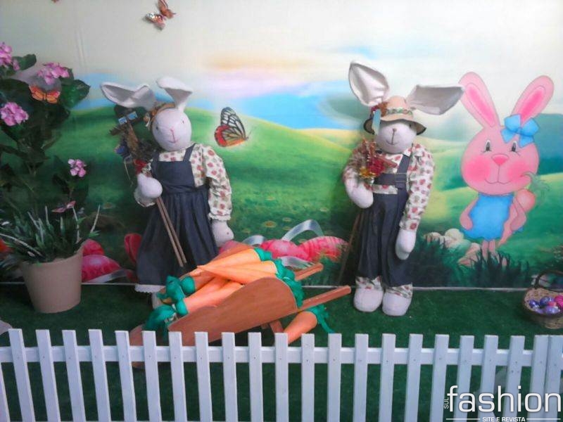Uma bela decoração alusiva à data já está montada no espaço em frente ao Cred Center, onde crianças e adultos podem tirar fotos ou aquela famosa “selfie” em frente à casinha, na paisagem ou com os coelhinhos.
