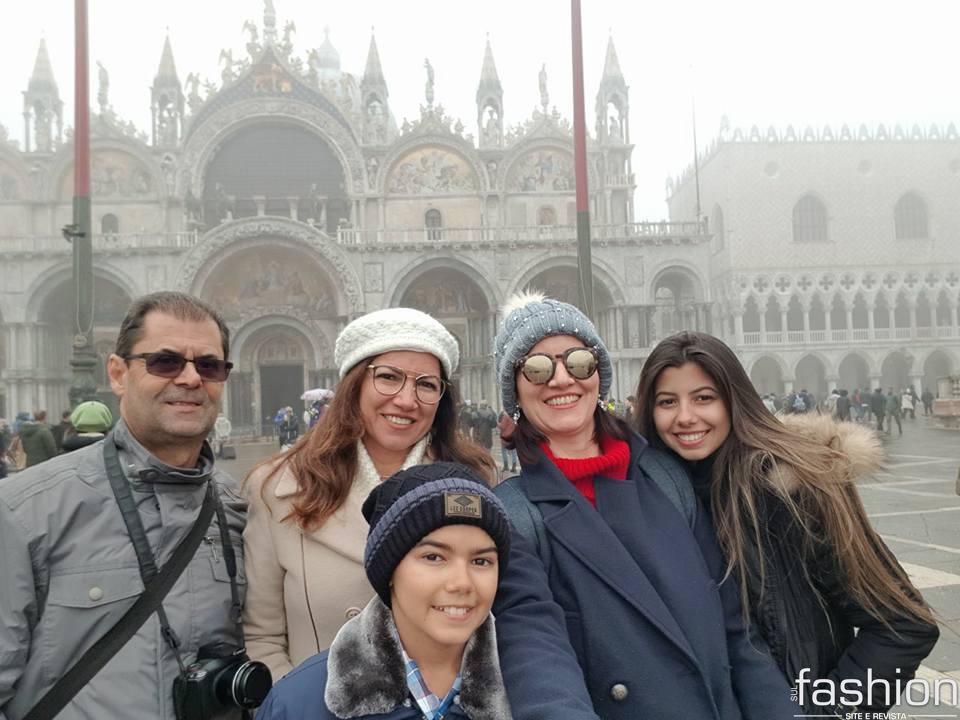Família reunida para um mega tour pela Europa, Adolfo, Maria Nunes, Keith Ellen, Allan e Marilda Alves tiveram um gostinho do Carnevale di Venezia durante passagem pela cidade flutuante. Também aproveitaram a experiência de combina descanso e agitação na cidade luz, Paris, e exploraram os encantos montanhosos da Suíça.