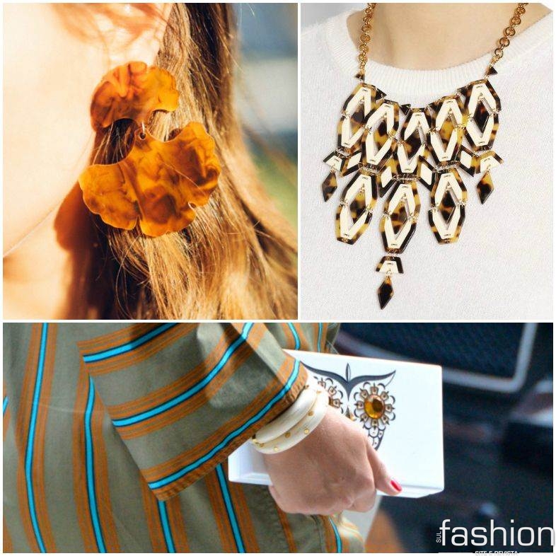 Brincos, colares, pulseiras, braceletes e até bolsas: a versatilidade do material é impressionante. Alguns deles podem, inclusive, entrar na água sem problemas - o que é ótimo para o verão, por exemplo. A dica é combiná-los com peças em metal e abusar das cores fortes.