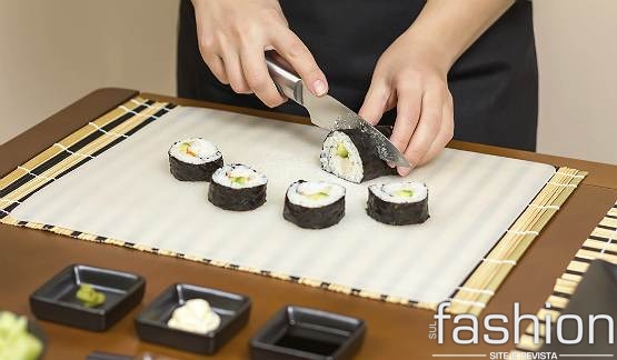A típica cozinha japonesa é composta por uma alimentação bastante saudável. Ela oferece preparações no vapor, como peixes, legumes, verduras, o arroz (gohan) e também alimentos crus como os peixes e alguns vegetais, que podem colaborar na dieta de quem busca emagrecer. “Mas, depois da invenção do rodízio de comida japonesa, que por mais saudável que seja, estimula as pessoas a comerem muito mais, o consumo de arroz e de outras preparações aumentou consideravelmente”, frisa a nutricionista. As mais pedidas são as frituras, como o guiosa (em média 77 kcal por unidade), hot roll (aproximadamente 90 kcal por unidade) e tempurá de camarão (em torno de 66 kcal por unidade), que tem seu potencial de engorda otimizado pelo grande consumo de shoyu, que contém altos teores de sódio.