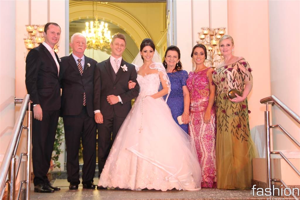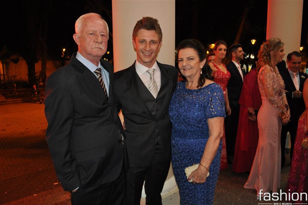 Após a cerimônia religiosa, padrinhos e pais receberam os noivos na porta da catedral com uma explosão de alegria, os sparkles (palitinhos de fogos), celebrando à felicidade do novo casal que em luxuosa festa no Criciúma Clube, compartilhou com convidados a noite mágica de casamento. Num cenário lindo, que ganhou projeto decorativo de Gina Mandelli, da Decorart, muitas flores em tons rose quartz e branco, parede de samambaias e muitas velas em elegantes castiçais de prata. A mesa dos noivos, pais e avós, recebeu decoração especial com peças finas em cristais e prataria da família.