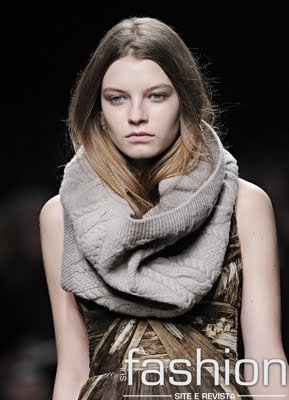 Os cachecóis que estão arrasando na estação Outono/Inverno 2012 são os Snoods, ou seja, o cachecol-gola. Com um estilo moderno ele é um cachecol fechado que fica enrolado no pescoço, dando um aspecto de um cachecol gorducho ou aparentando ser uma gola cheinha. Quem irá adorar este modelo de cachecol são as pessoas compromissadas que não podem perder muito tempo para se arrumar. O Snood é prático, em poucos instantes ele deixa você moderna e cheia de sofisticação!