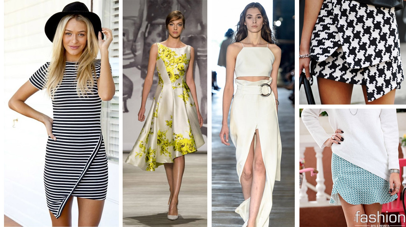 Depois das skorts (saias shorts) no ano passado, a trend assimétrica aparece principalmente em barra de saias e vestidos (mas também pode aparecer em blusas e casacos) mostrando o ar minimalista que o detalhe dá ao look. Os recortes assimétricos deixam a produção clean por si só, ou acompanhados de cores neutras.