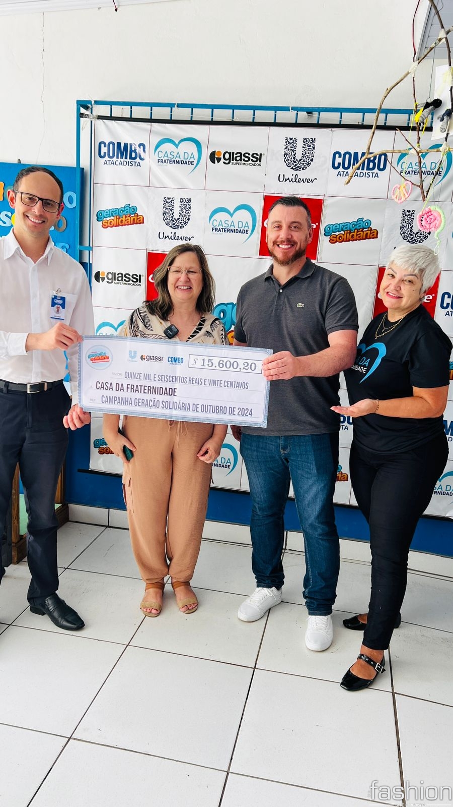Além disso, a Casa da Fraternidade teve o prazer de receber o cheque de arrecadação referente ao mês de outubro, no valor de R$ 15.600,20, fruto da venda de 55.700 unidades de produtos Unilever, das mãos do Representante Wagner Fernandes da Unilever e Giovani Alexandre Turratti do Combo Atacadista.