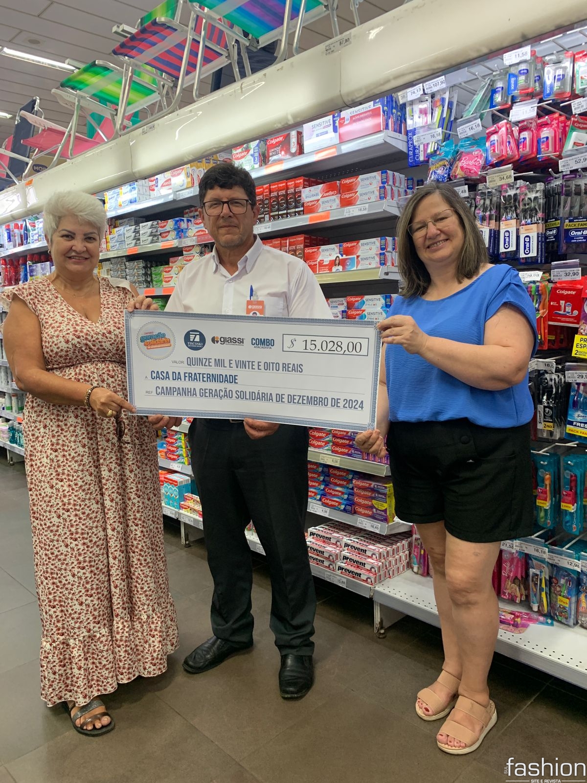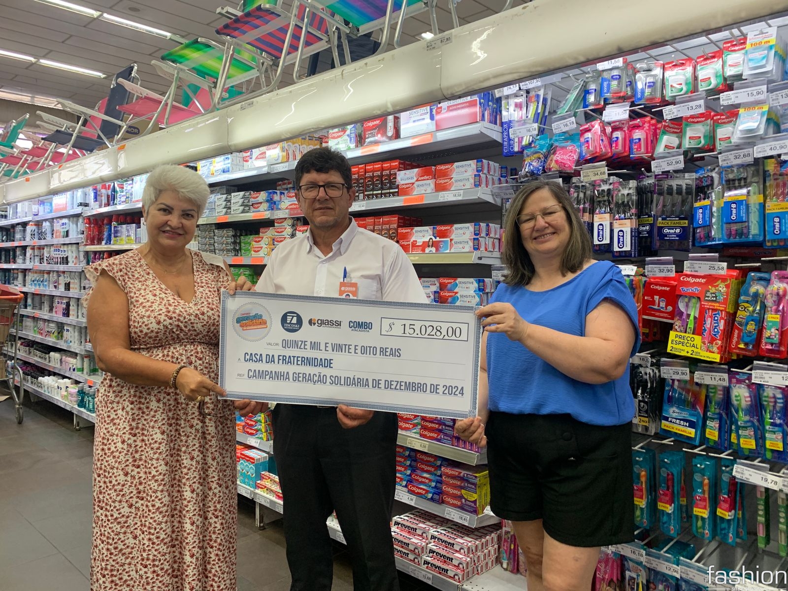 A Casa da Fraternidade todos os meses vem realizando uma Campanha em parceria com a Rede Giassi e Combo Atacadista para angariar recursos para a manutenção da instituição. Todo mês é disponibilizado dois produtos de uma empresa parceira a venda e um percentual vai em doação para a entidade. No mês de Dezembro por exemplo foram vendidos 5.525 unidades dos produtos creme dental Sensodyne e escova dental Sensodyne, distribuido pela empresa Tiskoski, no qual foi destinado R$2,72 por unidade a Casa da Fraternidade somando R$15.028,00 em doação repassada hoje pelas mãos do Sub Gerente da loja Giassi Cidade Alta Valterni. Isso só e possivel graças ao apoio do cliente que adquire o produto e contribui com a instituição. Este recurso é aplicado por exemplo no pagamento de serviços de manutenção e pequenas reformas, e despesas fixas da entidade, para que esta tenha suporte na realização dos seus quinze projetos executados que no ano de 2024 atendeu 454 matriculados. Todos ganham, pois a empresa tambem foi beneficiada com a venda que superou mais de 100% em relação ao ano anterior.