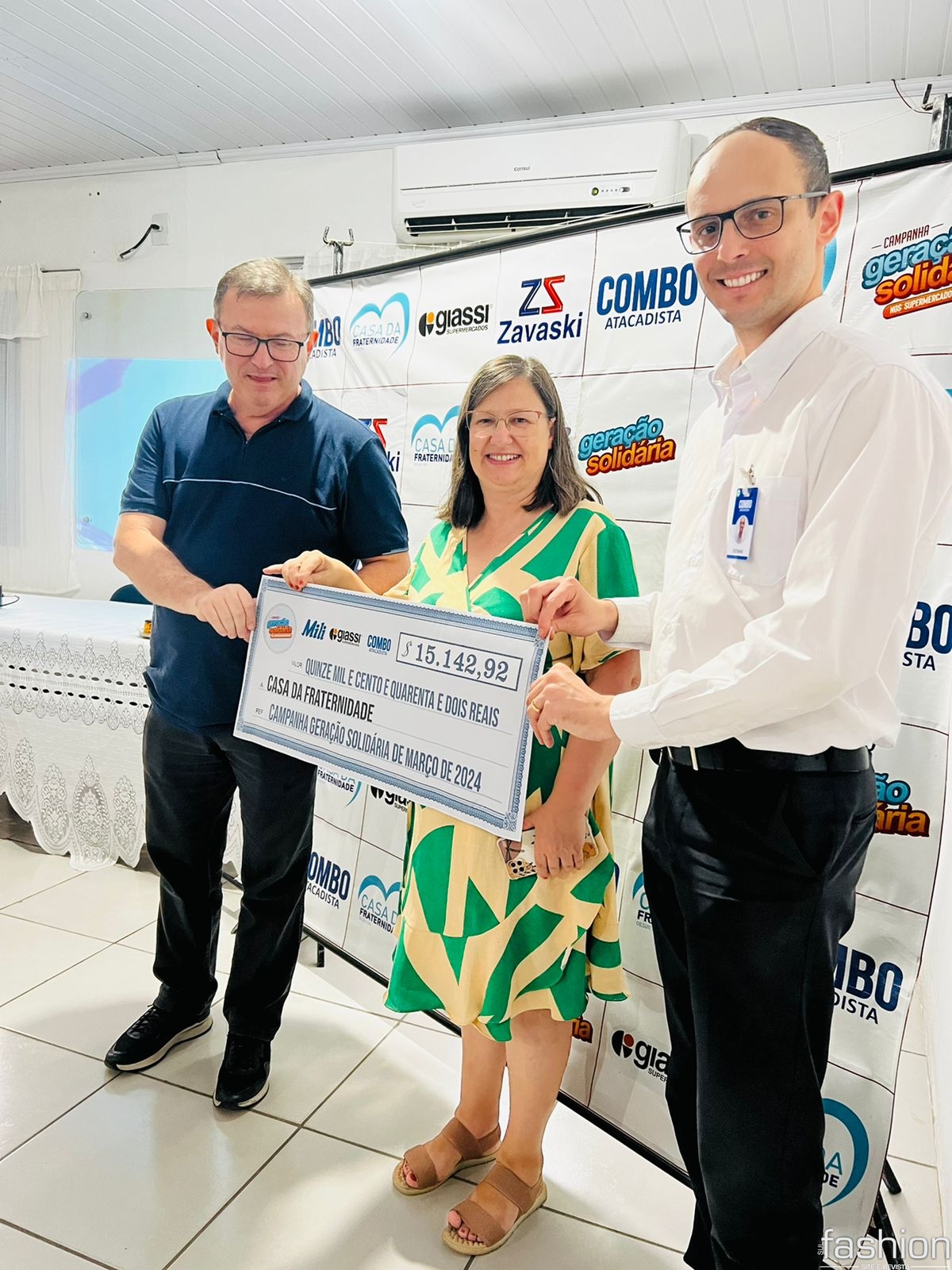 A cada produto vendido em todo estado nas lojas Giassi e Combo, um percentual é revertido em doação. No mês de abril está participando da Campanha a empresa Zavaski, com a linha de Desinfetante de 2 litros e Alvejante sem cloro 1,5 litros. O diretor da empresa, senhor Wladmir Zavaski que esta pela segunda vez participando da Campanha convida a todos para participar adquirindo o produto do mês, na certeza que os recursos estão muito bem investidos. Com esse investimento, a cada ano, a instituição vem ampliando seu atendimento ofertando um leque de atividades cada vez mais diversificado. Giovani Alexandre Turatti do grupo Giassi diz que esse diferencial faz com que mais empresas queiram participar da Campanha, pois é muito gratificante chegar na instituição e ver tantas crianças e adolescentes sendo beneficiados com as atividades. Catia Hahn, presidente e a vice presidente Ivete Rodrigues da Casa da Fraternidade, agradecem a todos, consumidores e empresários pelo apoio a essa causa tão importante para a comunidade araranguaense.