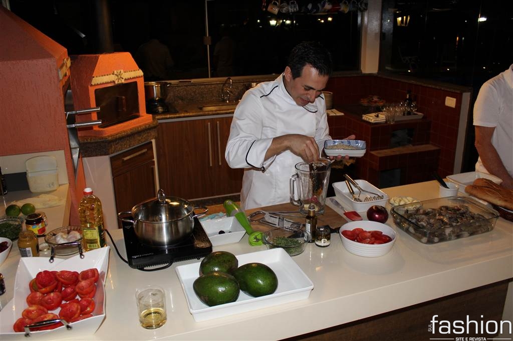 Fábio costuma vir duas vezes ao ano ao Brasil, porém, nunca havia reunido um grupo para mostrar seus talentos culinários. Desta vez deu uma verdadeira aula de gastronomia e preparou o menu premiado para cerca de 20 pessoas com ingredientes que trouxe diretamente da Alemanha.