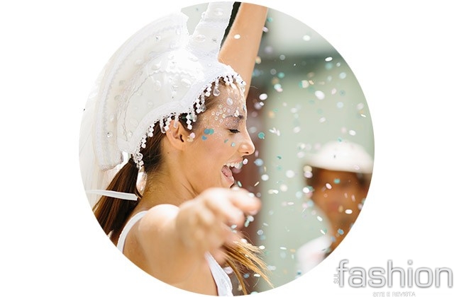 A fantasia de Mágica também não ficou de fora e traz as modelagens clássicas para o carnaval, como o macaquinho do tipo smoking levemente aveludado, gravata, cartola com coelho e varinha mágica.