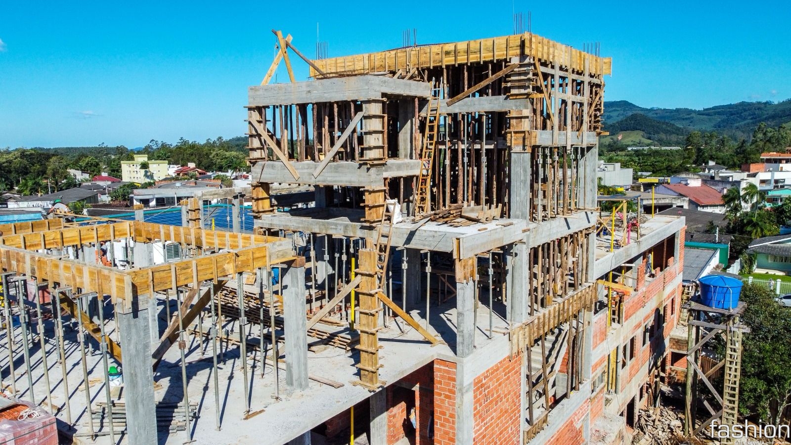 É visível a evolução da construção, que está com todas as lajes prontas, assim como a estrutura principal, incluindo paredes externas, que já recebem reboco. Na parte interna, está sendo colocado o gesso acartonado da divisão dos quartos, a parte elétrica, assim como a hidráulica, que está com 70% das instalações concluídas.