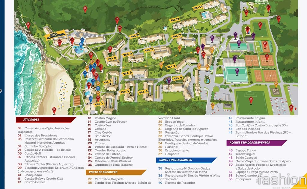 E para relaxar o corpo, a mente e espírito após fazer bons negócios, no SPA do Costão o hóspede encontra mais de 40 tipos de tratamentos. Farmácia e clínica médica integram o centro comercial do resort e o tornam ainda mais completo.