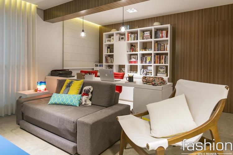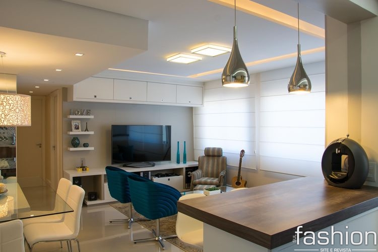 As salas integradas com outros ambientes como sala de jantar, cozinha ou escritório, devem ter elementos de decoração similares para que o ambiente ao todo seja harmônico e acolhedor.