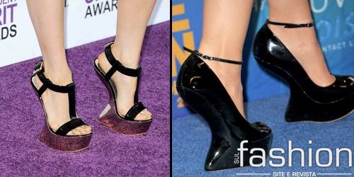 Sua anatomia com meia pata é localizado um pouco abaixo da sola do pé, tendo a garantia de segurar bem a estrutura, no entanto, é preciso muito equilíbrio. Você se arrisca? Algumas marcas como Santa Lola, Esdra e Lara Costa apostam no hit.