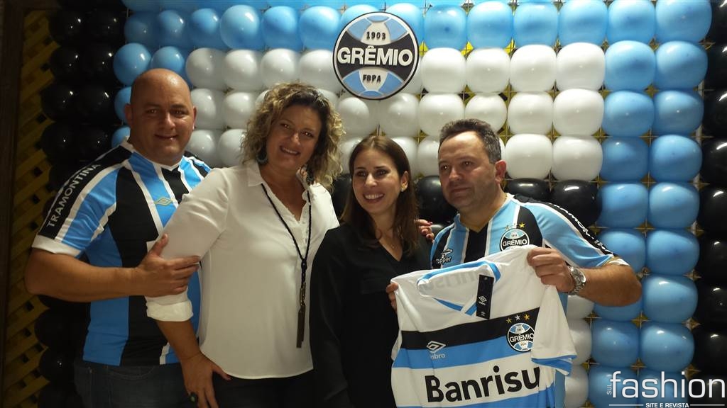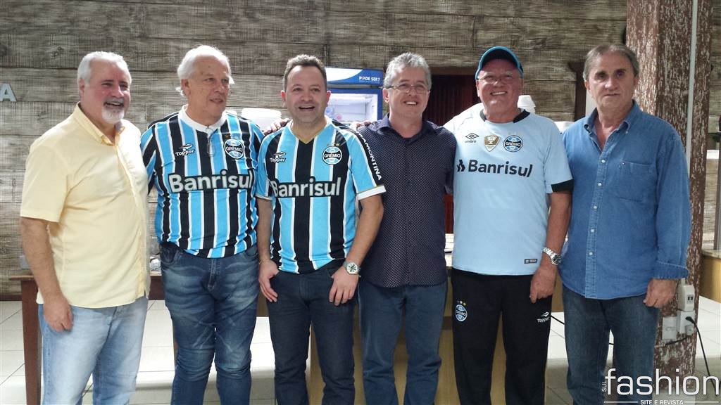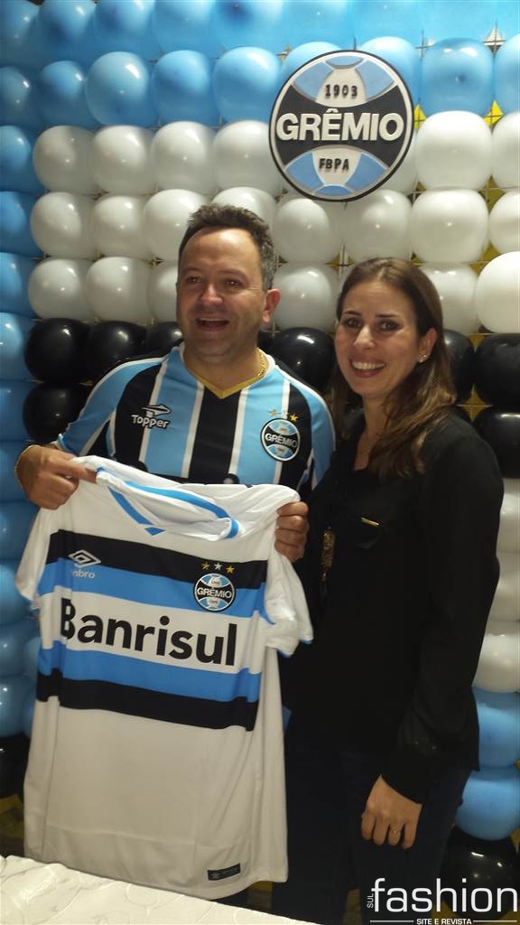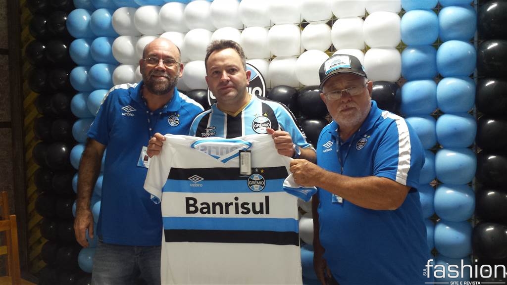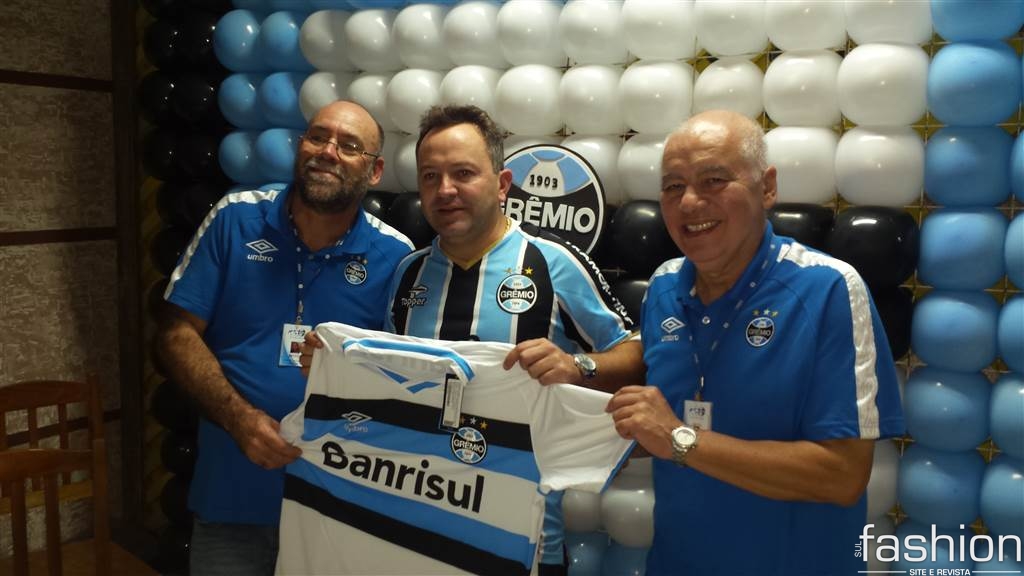 André Pedroso, o novo cônsul do Grêmio, recebe dos diretores consulares do Clube, a camisa oficial.