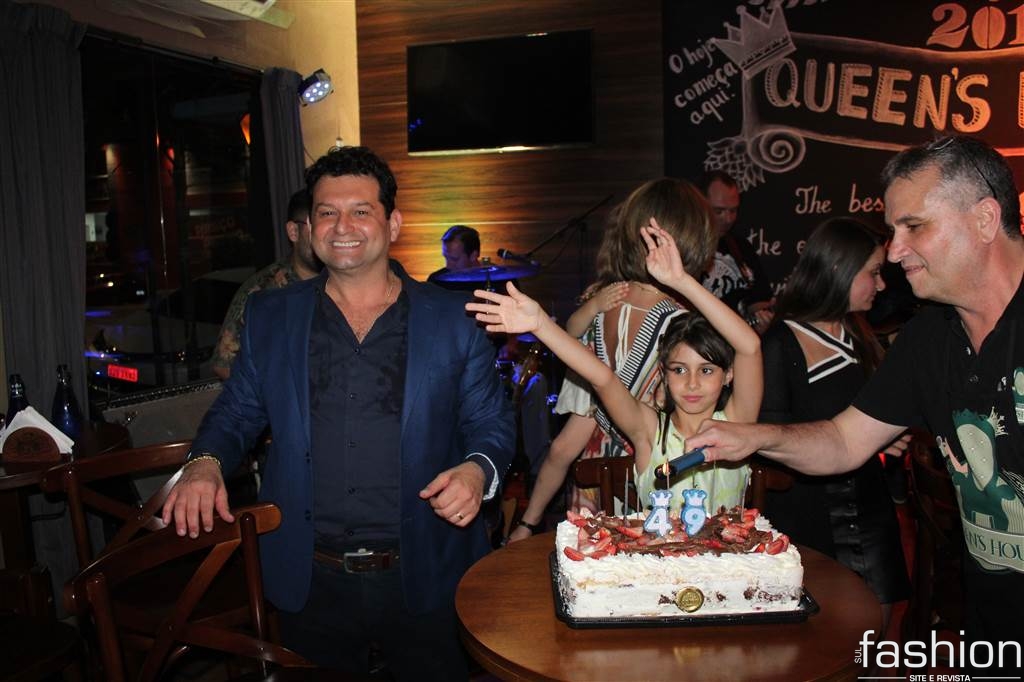 A noite, o anfitrião recebeu no Queen’s House Pub, célebres amigos, família, personalidades da região e imprensa, numa festa animada e alegre. Rodeado pelas mulheres de sua vida, a esposa Letícia, as filhas Vitória e Catarina, Fabrício se divertiu com o repertório da Banda Quadracústica, que embalou os convidados com clássicos do pop, rock e MPB.
