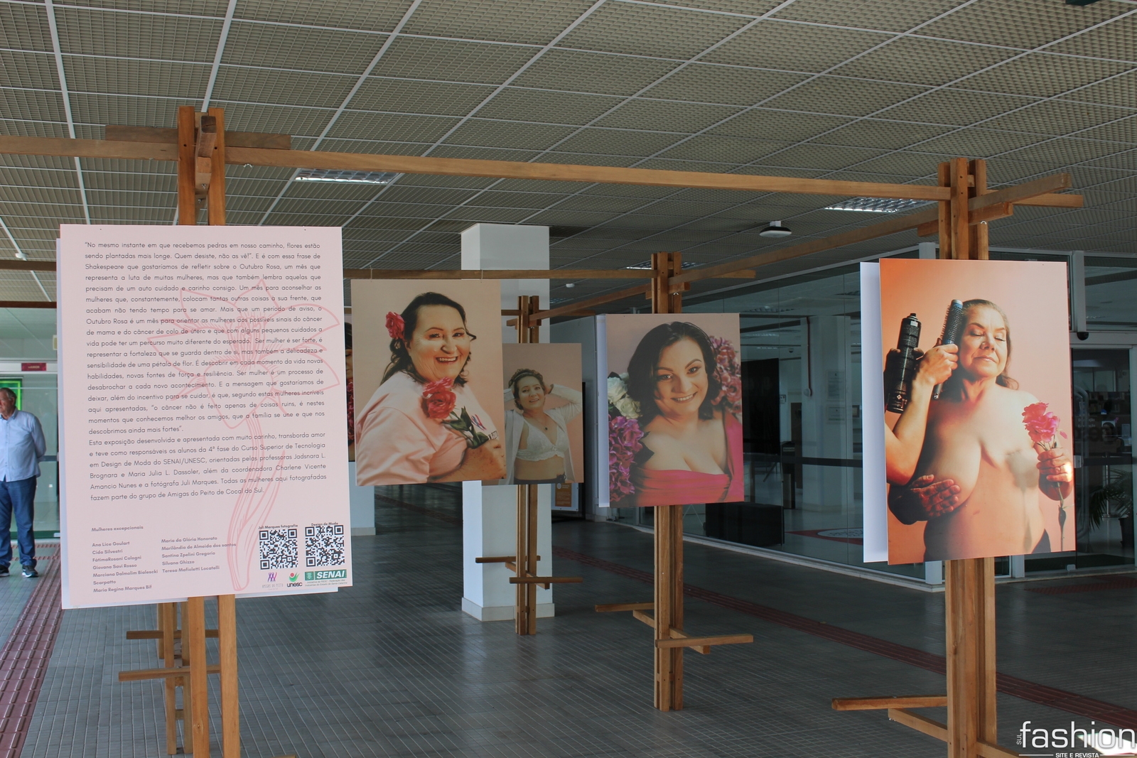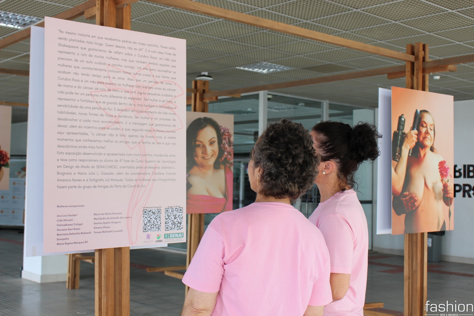 A mostra faz alusão à campanha Outubro Rosa, mês de conscientização e prevenção ao câncer de mama. A iniciativa é do curso de Moda do Senai/Unesc, que, por meio de uma atividade interdisciplinar com alunos da quarta fase, realizou 22 fotos de 11 mulheres com câncer, principalmente de mama. As modelos do trabalho fazem do grupo Amigas do Peito, de Cocal do Sul.