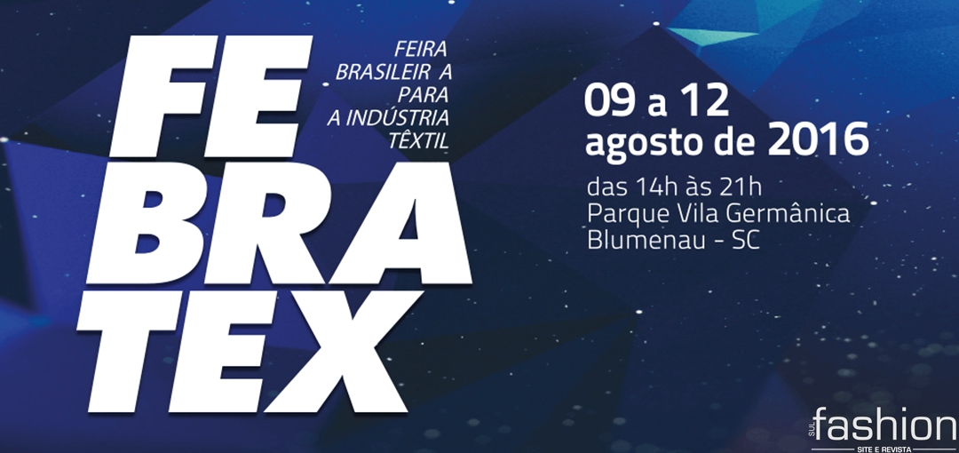 A 15ª edição da “Febratex – Feira Brasileira para a Indústria Têxtil”, maior feira para a indústria têxtil das Américas, acontece entre os dias 09 e 12 de agosto de 2016, no Parque Vila Germânica, em Blumenau (SC). O evento bienal é organizado e promovido pelo FCEM | Febratex Group. A expectativa de visitação é de cerca de 95 mil profissionais, superando a edição passada, realizada em 2014, que recebeu 90 mil visitantes.