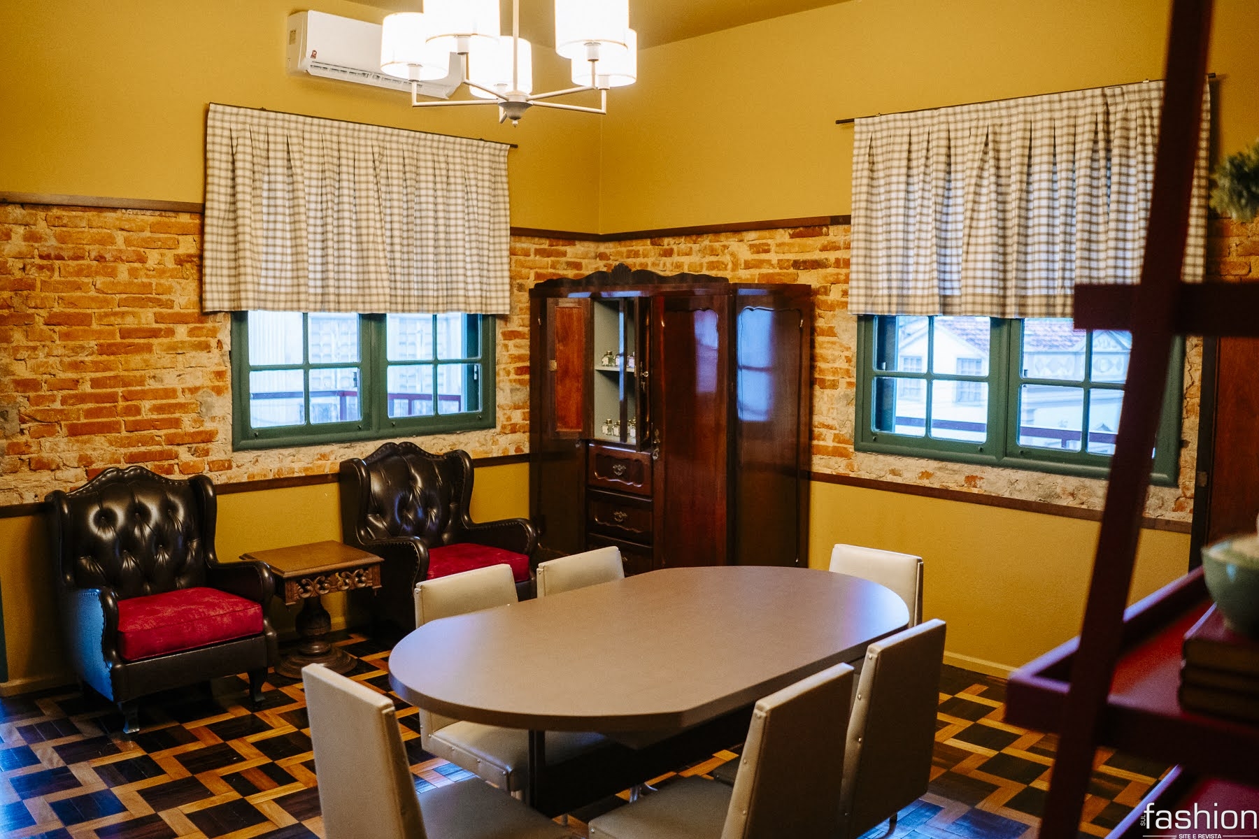 Destaque para a conservação de detalhes em pisos, cerâmicas, madeira, fotografias, móveis e objetos pertencentes à família. Os ambientes criados são compostos de um amplo salão e espaços menores mais reservados, bem como varandas e um empório para venda de produtos diferenciados. O projeto de repaginação do local foi executado pela Vértice Arquitetura Interiores.
