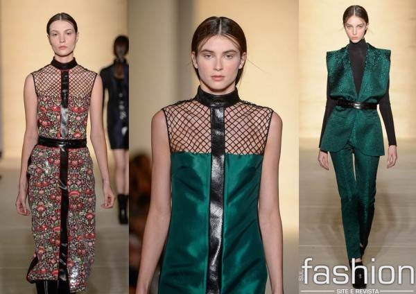 Entre os vitrais do belíssimo prédio da FAAP, o desfile de Reinaldo Lourenço apresentou sua coleção “Renascimento”, inspirada na cidade italiana de Florença e na arte e arquitetura renascentistas. Entre cores e estampas, o marinho, o off-white e o verde-florentino misturaram-se com estampas que imitavam os mármores de Carrara (chiquérrimos), além de padrões florais desenvolvidos especialmente pela renomada Liberty London. A gola alta apareceu em vestidos, blusas e até casacos, garantindo uma dose de mistério sexy aos looks. Entre saias e vestidos de comprimento mídi, a febre das fendas continua, mas quem comanda os momentos pele-à-mostra são as franjas: acompanhadas de pérolas de metal, trazem sensualidade e movimento às mais variadas peças. Para completar, coletes com a cintura marcada, fazendo conjunto com calças na mesma cor e tecido. Reinaldo Lourenço criou uma coleção que vai da festa ao trabalho – e está prontinha para ir direto para os nossos closets.