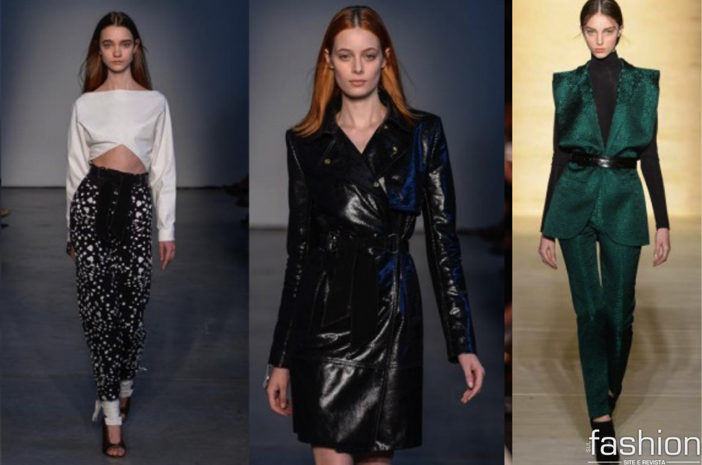 Tal pai (e mãe), tal filho: o segundo dia de SPFW iniciou com o desfile de um dos jovens mais talentosos da moda atual. Pedro Lourenço, o garoto prodígio de 23 anos (filho de ninguém menos que Reinaldo Lourenço e Gloria Coelho) realizou seu desfile na galeria de arte White Cube, com clima anos 1980 e um mix entre maxi e minimalismo na medida. Crepe, neoprene, couro, seda e paetês são os materiais que dão vida aos looks de inverno 2015 da marca, trazendo calças de cintura alta larguinhas (combinadas com cropped tops e blusas justas de manga longa), trench coats usados como vestidos e terninhos ao melhor estilo working woman. Na cartela de cores? Amarelo, bege, branco, preto e até pink – afinal de contas, o inverno vai muito além do cinza.