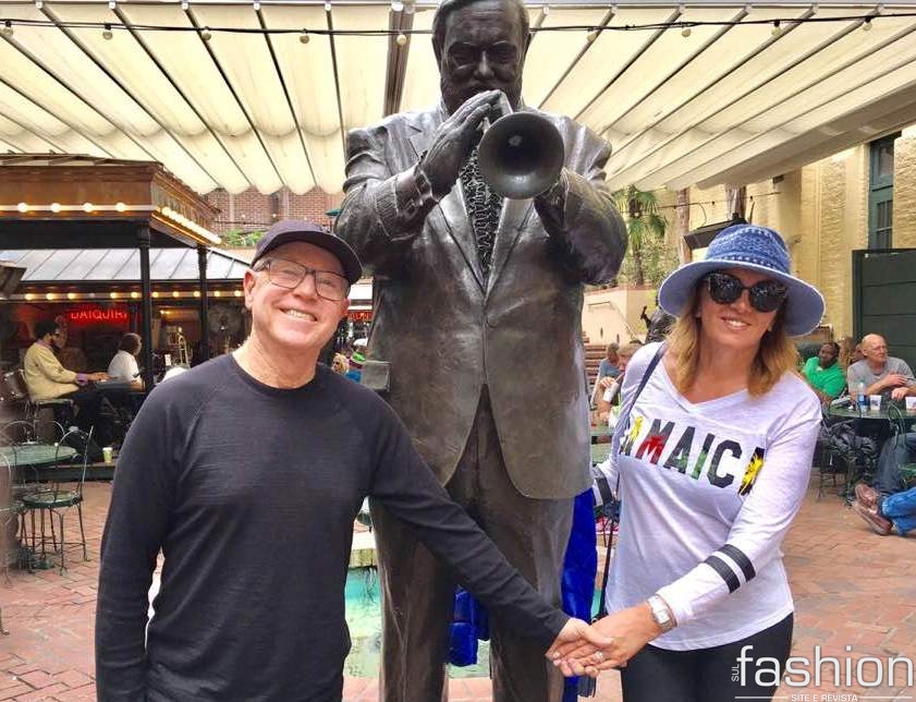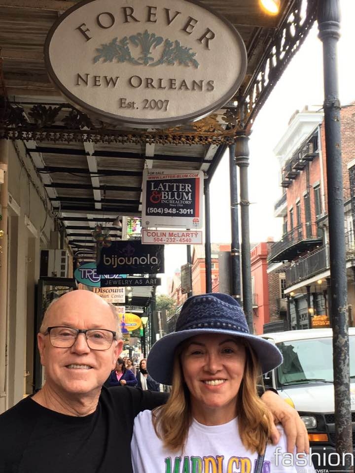 Aproveitando a viagem para comemorar o aniversário da filha Giselle Estevam Thackrey e o batizado do pequeno Jack, em Fort Lauderdale, Helania Goulart e Everaldo Ferreira deram um pulinho em New Orleans para curtir a folia um pouco longe de nosso carnaval brasileiro, no animado Mardi Gras.