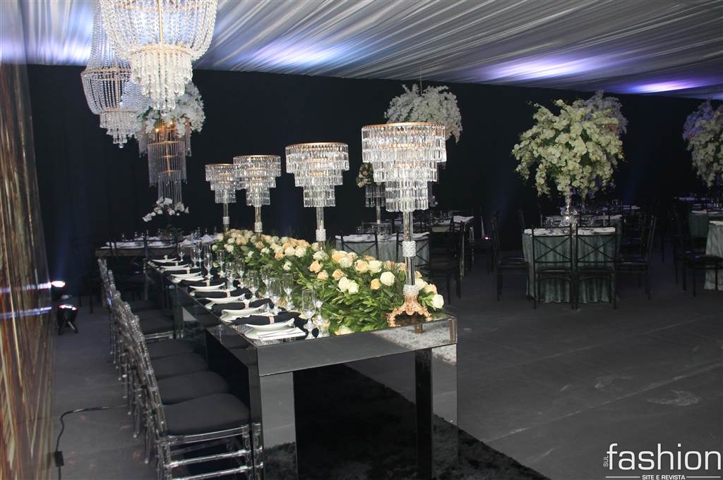 Logo após, os convidados e noivos foram recepcionados numa belíssima festa organizada pelo filho de Maria e Jailson, Jonatan Castelan e Eduardo Alves da JC Lustres e Decor, com apoio da promoter, Michelle Nissimura. Maravilhoso buffet servido pela Churrascaria Gaúcha acompanhado da alegria que contagiava a festa. A noiva vestiu um lindo dress off white da estilista da família que reside em Cascavel, Silvana Dagostim.