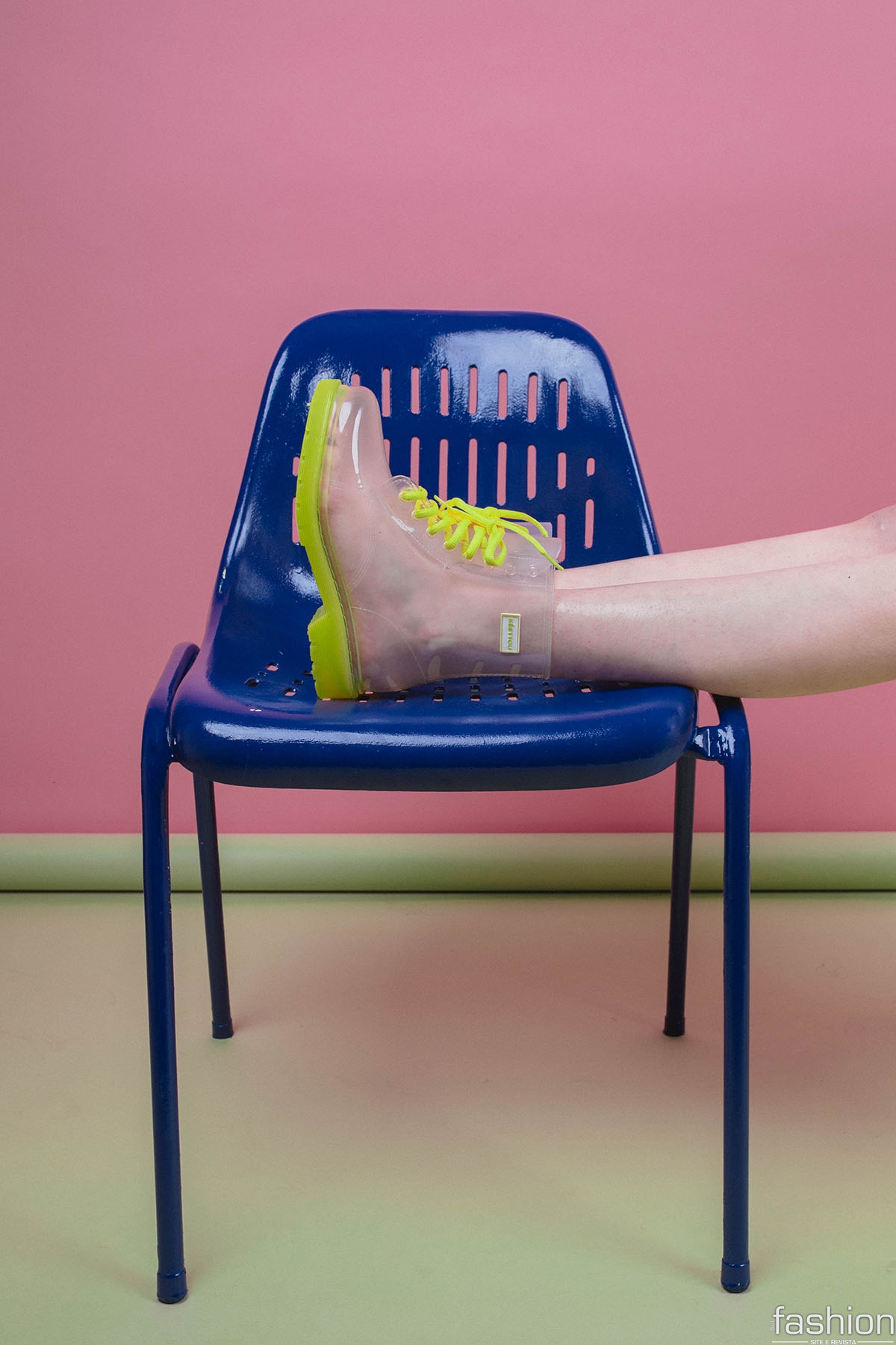 Os favoritos do mix da marca de fashion boots e galochas são icônicos coturnos transparentes, que trazem a rebeldia característica do modelo aliada ao futurismo da transparência. Ideais para ousar na hora de compor um visual ousado e ultracool, eles podem ser usados deixando a pele à mostra ou acompanhados por meias divertidas e irreverentes, como as opções multicoloridas exclusivas que acompanham o produto, assim como as versões com glitter e arrastão que estão super em alta na cena fashion.