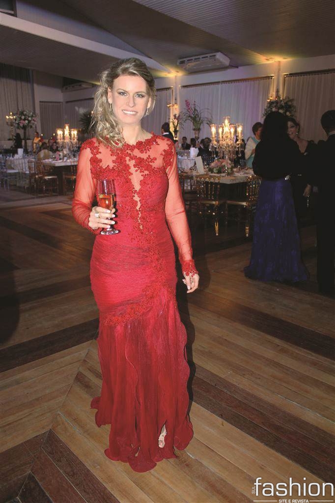 Entre as tonalidades eleitas pela mãe, madrinhas e convidadas destaque para tradicional preto, tons de dourado e nude, e o goiaba, em composições dentro das últimas tendências, com destaque ao tule ilusion, muito usado pela estilista Chirley Vicente, que vestiu a noiva, a irmã e a mãe, para dar o detalhe transparente ao vestido. Esse tecido, trabalhado com bordados em pedrarias e aplicação de renda, aceita muito bem, inclusive, a sobreposição de peças e cores. Na noite de enlace, os looks apareceram com mangas curtas ou longas, de um ombro só, e o tomara que caia, preferido pela ousadia e sofisticação como a ocasião pedia. Além do tule, outro hit de destaque e elegância entre os modelitos, foi a renda, confirmando a preferência entre mulheres de todas as idades.