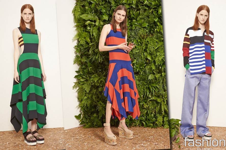 A próxima estação promete ser gráfica. Além dos poás (estampas de bolinha), que voltaram ao closet fashionista, as listras ganharam as mais variadas versões nas coleções resort 2015 do Hemisfério Norte - e não somente na clássica camisa Breton com listras navy, mas também em versões ultracoloridas.