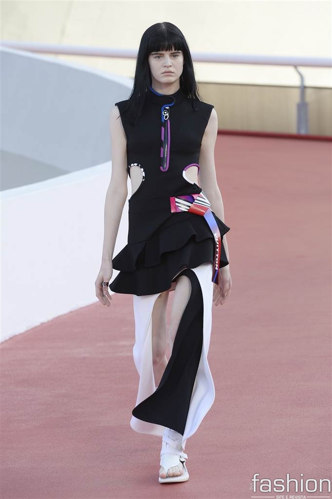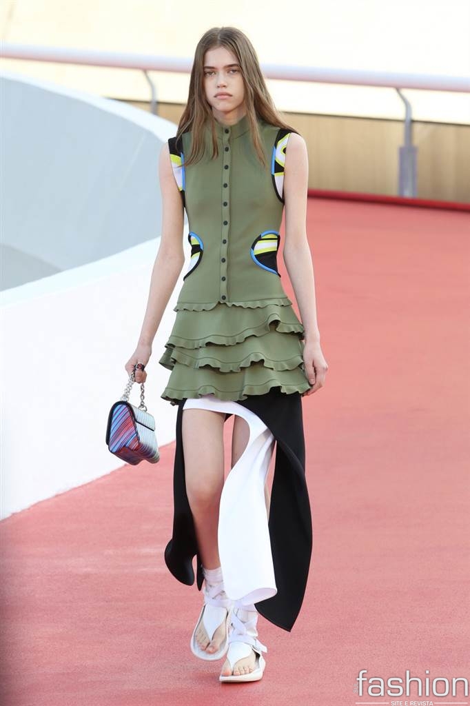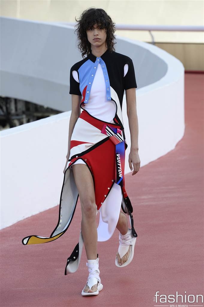 Nicolas Ghesquière apresentou uma coleção nada literal sobre o Brasil, misturando logos, esporte e modernismo. Brincou mais com babados que de costume, numa interpretação livre de sua menina do Rio.