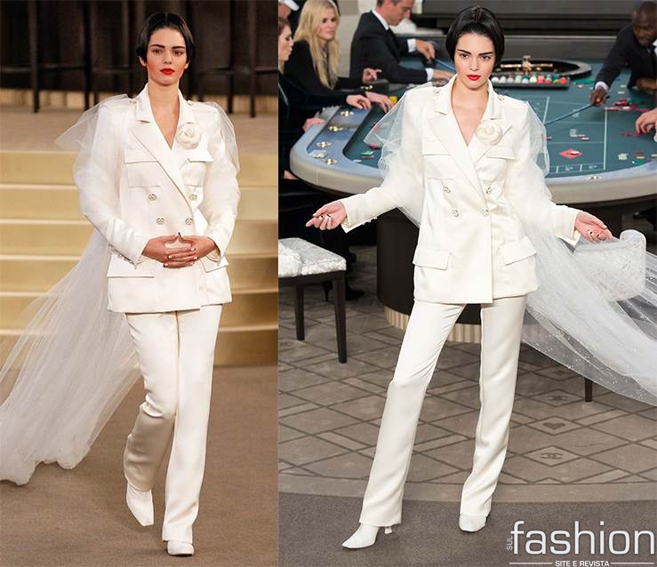 No desfile da grife Christian Dior notamos um estilo delicado com bordados, shape clean e toques minimalistas. Já a Maison Chanel apresentou a “noiva” Kendall Jenner usando um tailleur (conjunto social de terno com calça), deixando de lado o clássico wedding dress, dando um ar moderno ao altar.