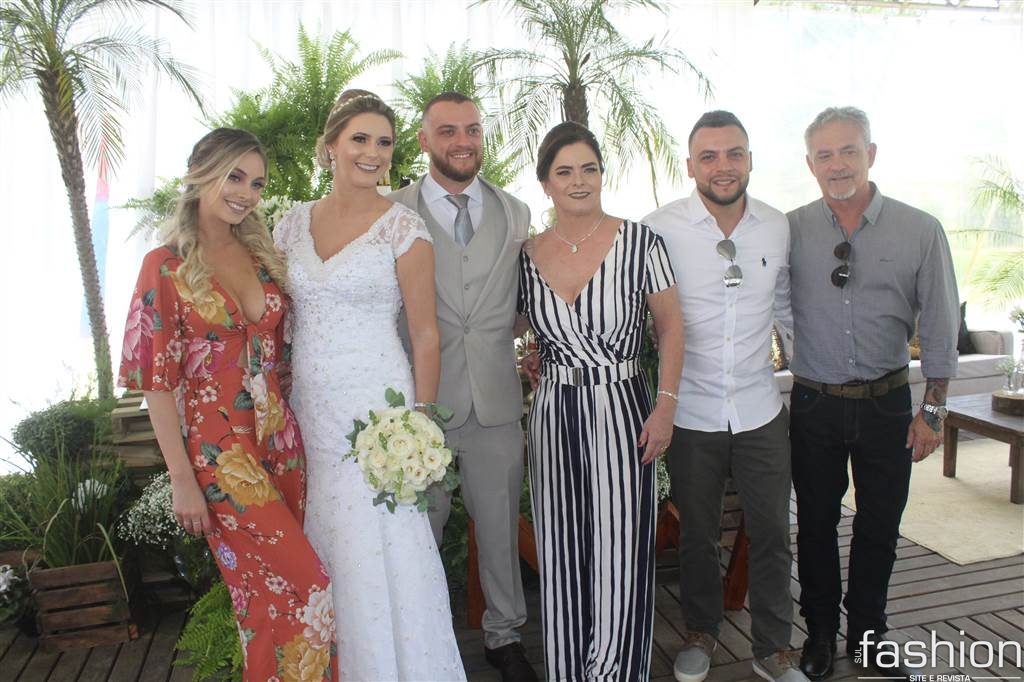 Celebração conduzida pela pastora Vera Lúcia Becker, de Florianópolis, foi marcada pela emoção e romantismo, um tanto descontraída e cheia de momentos lindos como a troca de votos de amor e a benção dos pais dela, Paulo Baran e Margarete Timboni Baran, e dele, Nelson Moreira e Cassandra, e também dos padrinhos, que na mesma sintonia desejaram proteção e felicidades ao novo casal.