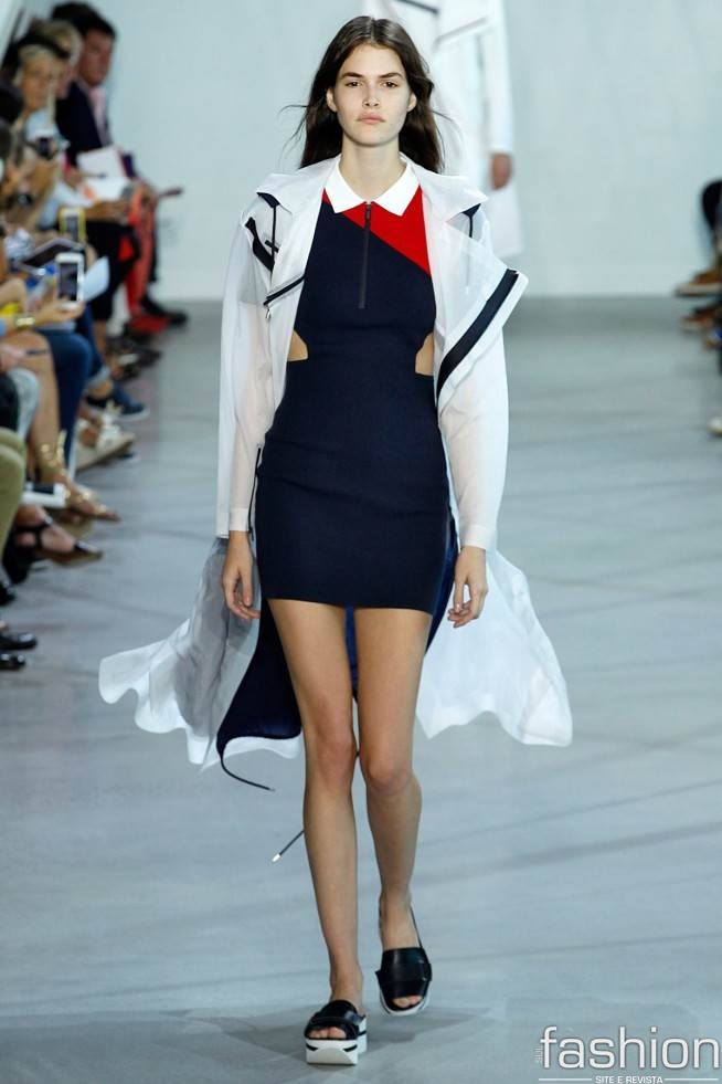 Carolina Herrera- Inovando as famosas pregas, transformando em detalhes de malha transparente, a grife Carolina Herrera mostrou como surpreender com uma nova densidade nas roupas, fazendo uma incrível apresentação.