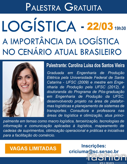 Para superar os desafios da crise econômica brasileira é preciso reorganizar processos, aumentar o nível de serviço ao cliente e, ao mesmo tempo, reduzir custos. Para falar sobre esse cenário, a Prof. Carolina Luisa dos Santos Vieira estará na Faculdade Senac em Criciúma no dia 22 de março, terça-feira, às 19h30. O evento é gratuito.