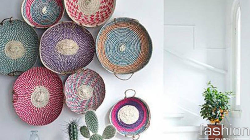 Procure pela casa elementos feitos à mão que funcionem pendurados na parede. Dê atenção especial às cores e texturas. Os cestos acima trazem ambas as características à decoração.
