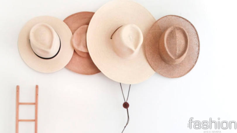 Um conjunto de chapéus funciona bem na decoração da parede quando agrupados em uma paleta de cores harmônica. Se eles forem de abas largas, melhor fazer uma sobreposição.