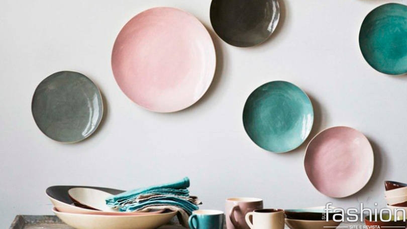 Quando arranjados de maneira despretensiosa, aquele jogo de pratos esquecido pode compor uma bela decoração na sua parede. Sua cozinha pode ser um precioso acervo para encontrar possíveis objetos de arte.