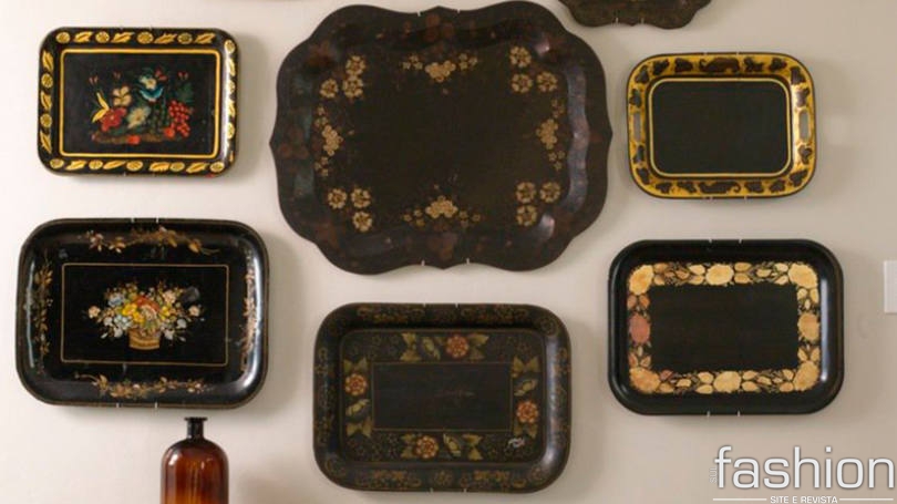 Ao invés de esconder bandejas antigas no armário, que tal, já que elas normalmente têm pouco uso, fazer uma bela composição com elas?
