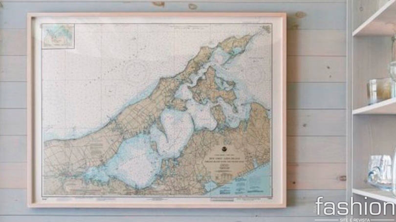 Mapas podem ser enquadrados ou pendurados diretamente na parede para compor a decoração. Melhor se eles forem de lugares que são especiais para você. Muito provavelmente todo mundo que visitar sua casa vai parar alguns minutinhos para dar uma olhada.