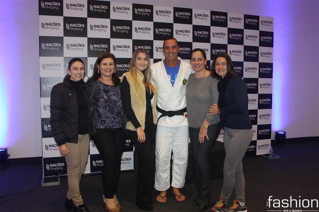 Numa iniciativa bacana do Nações Shopping em parceria com a Onlife Funcional Fitness Clube de Criciúma, o ator, modelo e faixa preta de Jiu Jtsu, Paulo Zulu, ministrou o 2º Workshop de Defesa Pessoal para Mulheres no Espaço do Empreendedor. Paulo Zulu ensinou na prática às mulheres presentes, dicas e técnicas de reação a ataques. A mulherada se manteve animada do começo ao fim, diante do carisma de Zulu, e entre as presentes, uma turma de Araranguá capitaneada pela querida Bruna Estevão.