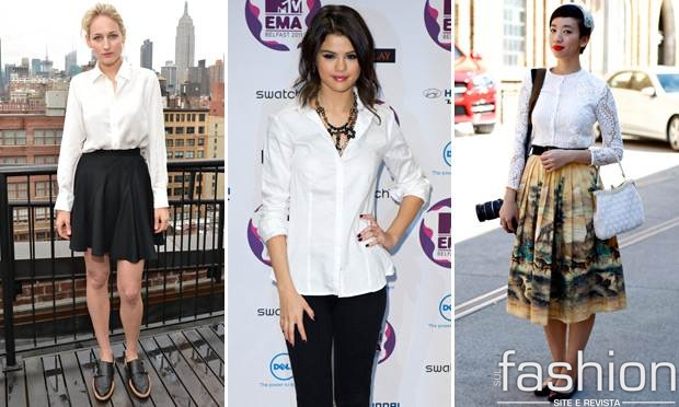 Camisa branca - Tradicional, versátil e básica, a camisa branca ajuda a compor looks para diversas ocasiões, por isso, é item obrigatório no guarda-roupa feminino. Para produções mais poderosas, combine-a com maxiacessórios.