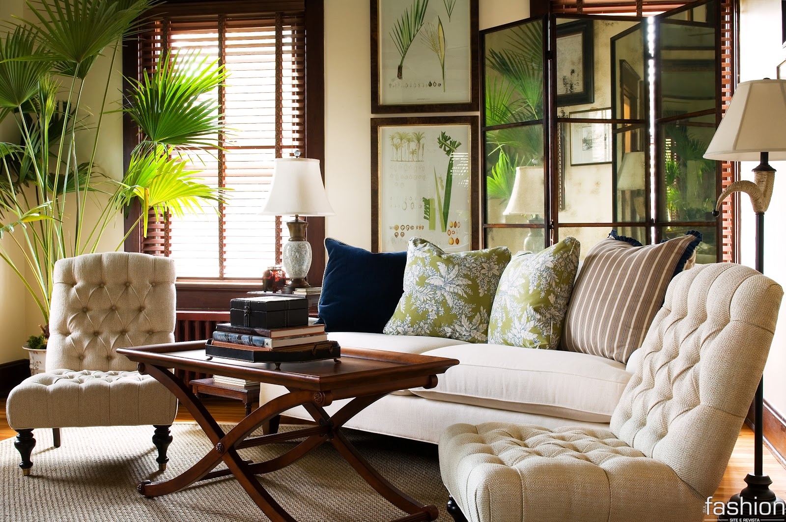 atualmente é possível elaborar um ambiente elegante, que mescle cores neutras e móveis de madeira com itens coloridos e estampados. Essa ‘tropicalidade’ oferece novas possibilidades para itens clássicos, sem deixá-los com visual de festa do Havaí.