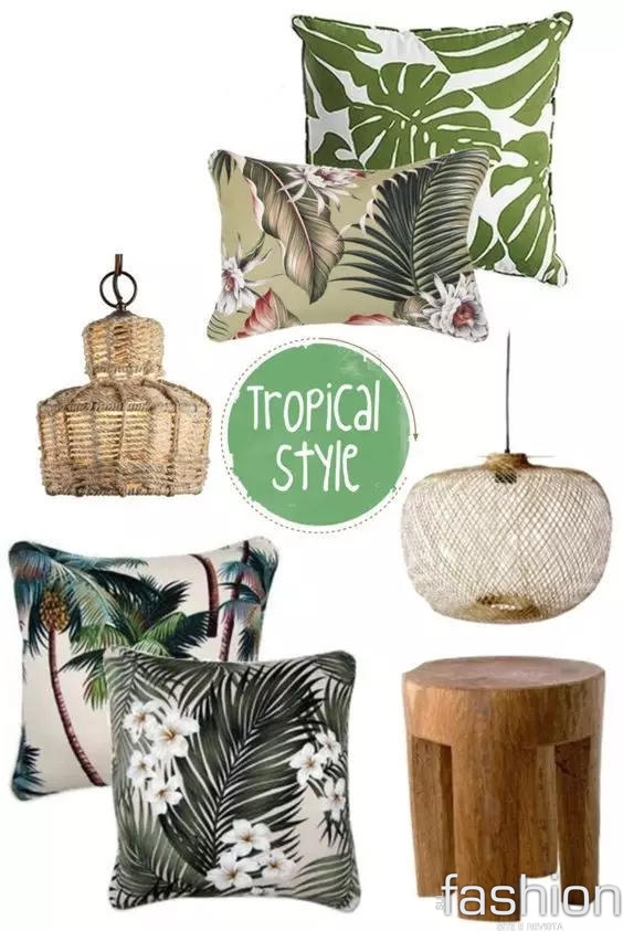 Para deixar a casa com toques tropicais, aposte em itens como almofadas estampadas com folhagens ou flores, vasos e arranjos coloridos e objetos de decoração em formato de frutas e animais. Como esses itens serão o destaque do ambiente, equilibre-os com cores neutras e tenha cuidado com a mistura de estampas, que poderá carregar o visual. Especialmente em ambientes pequenos, aposte em itens com personalidade e não deixe de lado as folhagens e flores naturais, que sempre deixam o ambiente mais aconchegante.
