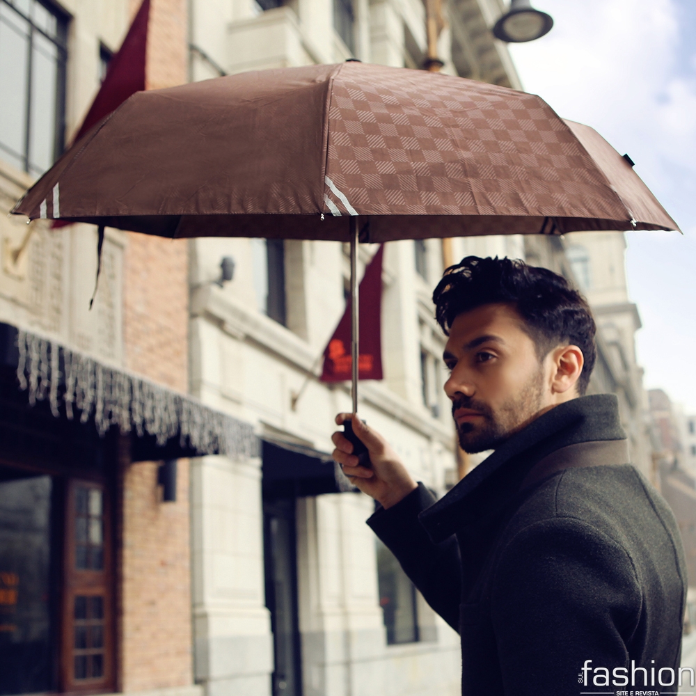 Enganado está quem disser que isso é coisa só de mulher. Não mesmo! Homens também estão incrementando o traje com guardas-chuva. Afinal, é um acessório que traz muito estilo e charme.