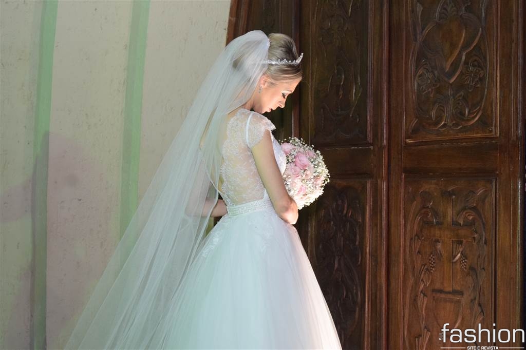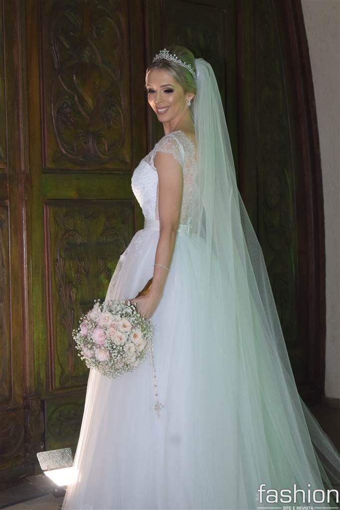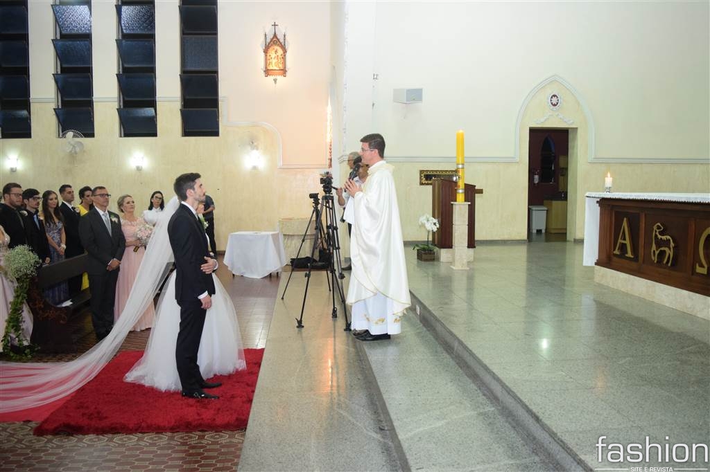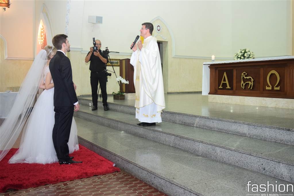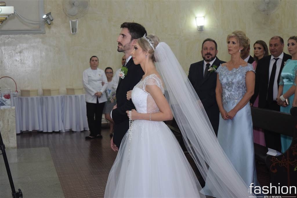 A noiva, esbanjou delicadeza vestindo seu princess dress feito por Wandir, e ao lado do pai, atravessou a nave ao encontro de Tiago que a recebeu sorridente. Durante a cerimônia, conduzida pelo Pároco Alírio,  a emoção contagiou os presentes e o casal, que recebeu a benção do padre e dos pais dele, Antônio Carlos Jeremias e Francisnete Dagostin Jeremias, e dela, Célia e João Batista Costa.